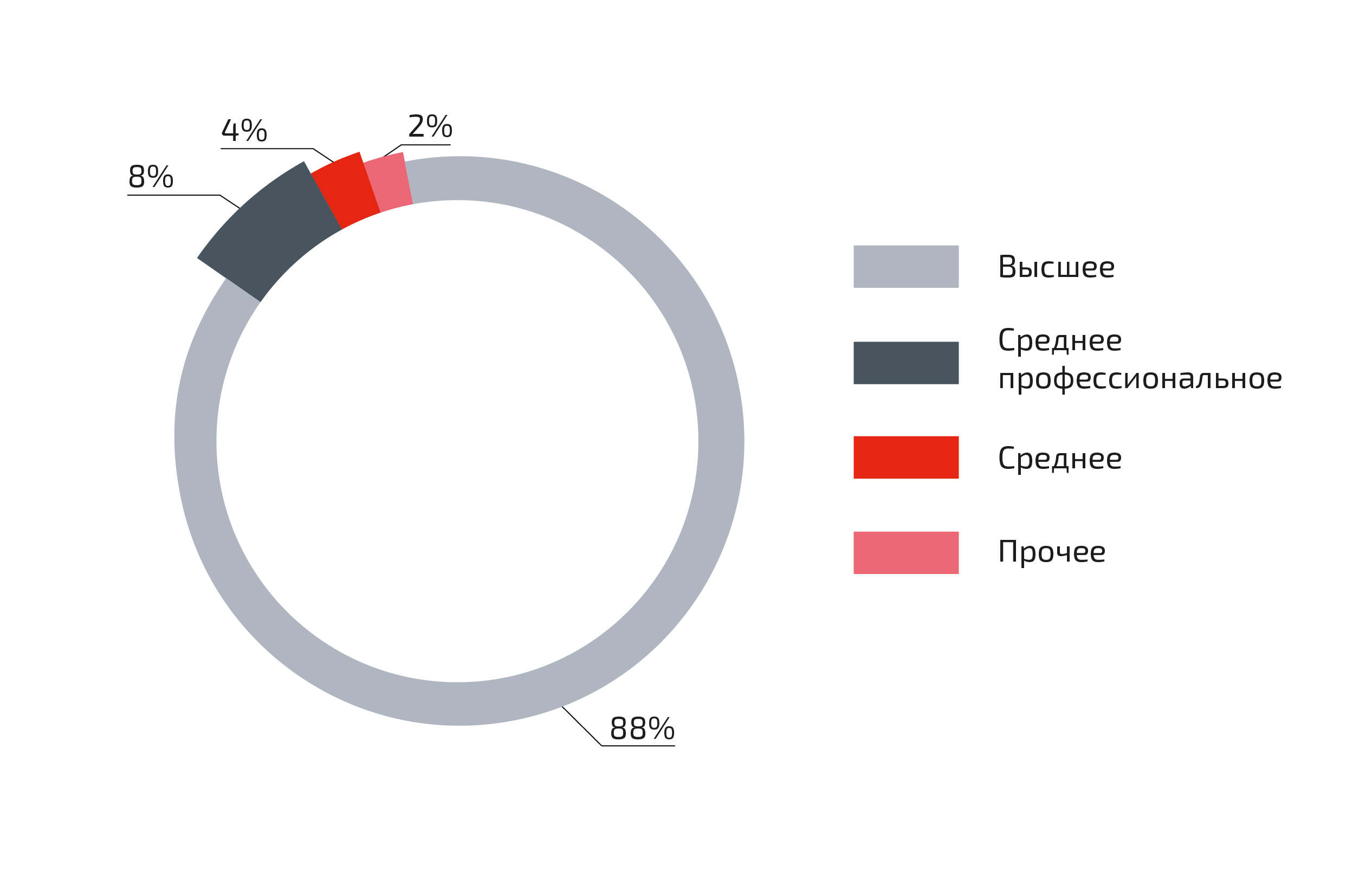Уровень образования сотрудников, %